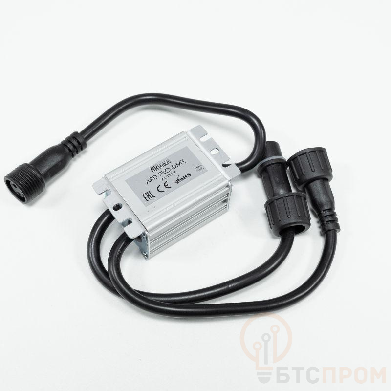 DMX PLC инжектор (коннектор питания) для подключения гирлянд, управляемых по протоколу DMX512. Напряжение питания DC 24V. Вход: провод питания и сигнальный провод (DMX512). Выход: питание+DMX-PLC. Выходной порт - 1 шт. Поддерживает управление до 200 RGB светодиодов.