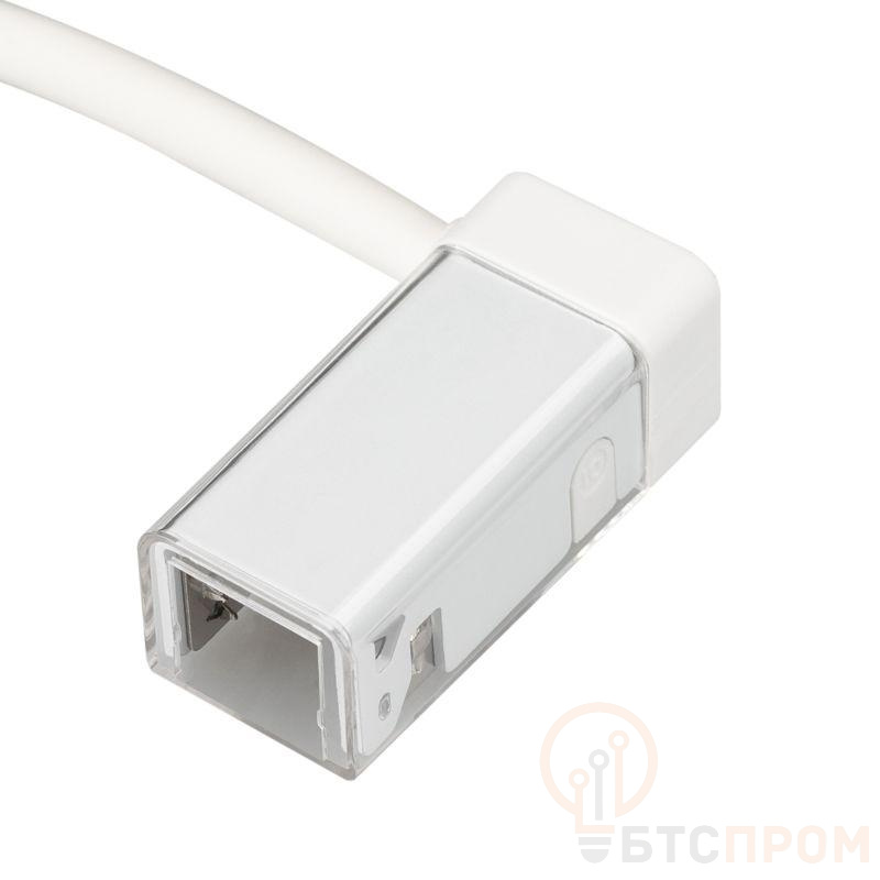 Герметичный коннектор питания для гибкого неона MOONLIGHT, сечение 12х13мм, цвет белый. Правый вывод провода. Подключение питания без пайки, IP54, длина провода питания 500мм.