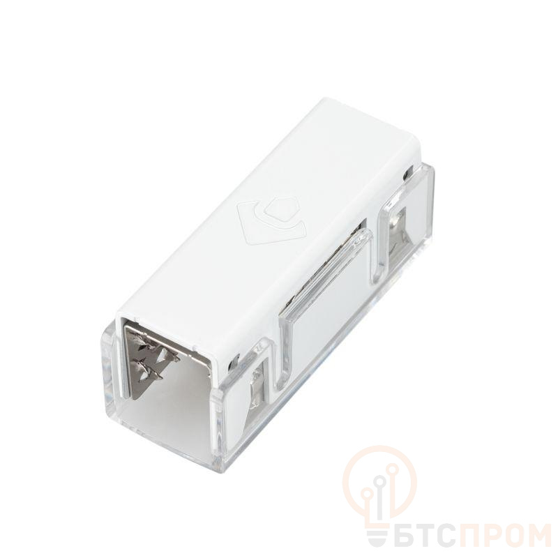 Герметичный двусторонний коннектор (соединитель) питания для гибкого неона MOONLIGHT, сечение 17х12мм, цвет белый. Подключение питания без пайки, IP54.