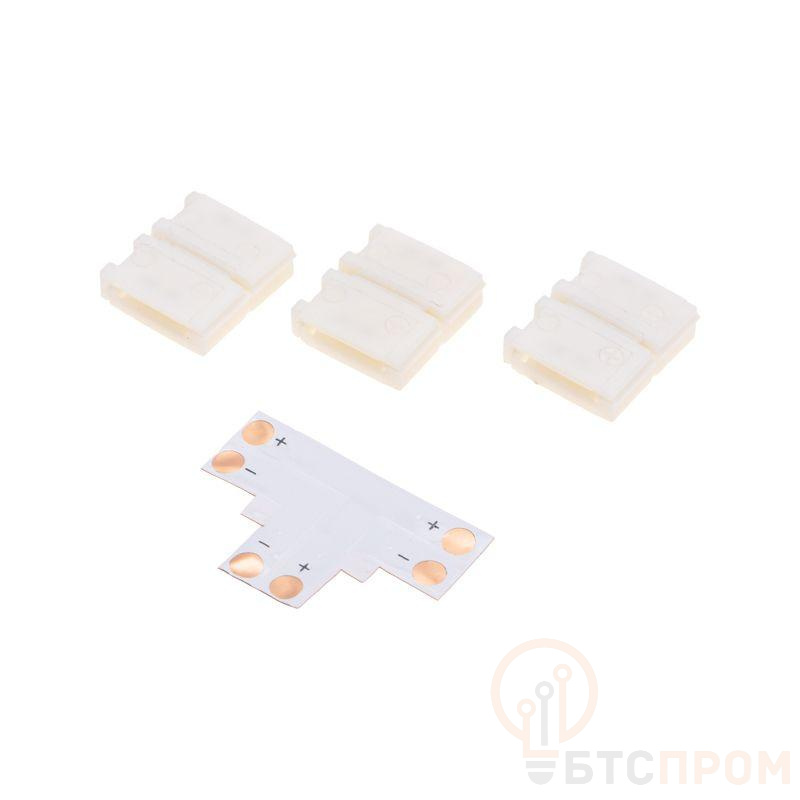 T-образный коннектор – это устройство, предназначенное для соединения трех отрезков светодиодных лент SMD шириной 10 мм. Коннектор выполнен в T-образной форме, позволяющей удобно и безопасно подключить ленты друг к другу. Представляет собой удобное решение для создания более сложных конфигураций и эффектов освещения в пространстве. С трех сторон коннектора располагаются защелкивающиеся механизмы, которые обеспечивают надежное соединение лент и предотвращают их случайное разъединение. Процесс установки происходит быстро и просто, так как не требует пайки или специальных инструментов. Напряжение от 5 до 24В.