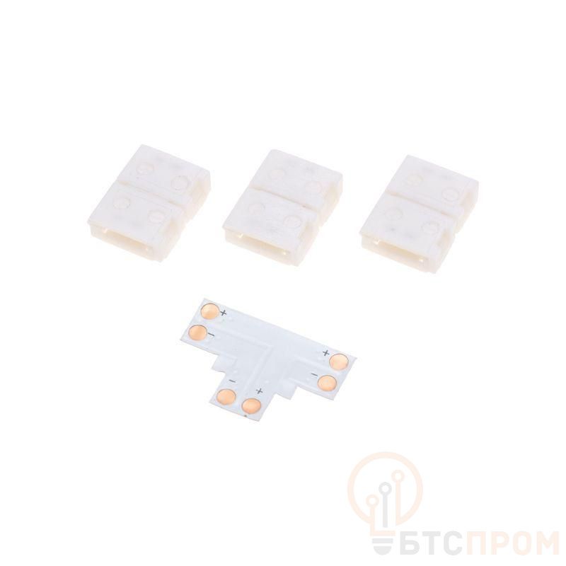 T-образный коннектор – это устройство, предназначенное для соединения трех отрезков светодиодных лент SMD шириной 8 мм. Коннектор выполнен в T-образной форме, позволяющей удобно и безопасно подключить ленты друг к другу. Представляет собой удобное решение для создания более сложных конфигураций и эффектов освещения в пространстве. С трех сторон коннектора располагаются защелкивающиеся механизмы, которые обеспечивают надежное соединение лент и предотвращают их случайное разъединение. Процесс установки происходит быстро и просто, так как не требует пайки или специальных инструментов. Напряжение от 5 до 24В.