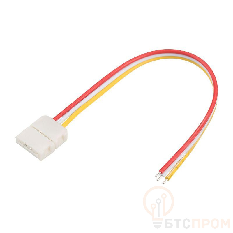 Одиночный коннектор с проводом 15см для подключения питания к открытым светодиодным лентам MIX (тёплый+холодный) шириной 10мм. Материал - пластик. Максимальный допустимый ток 3А, напряжение до 50 В. Цена за 1шт.