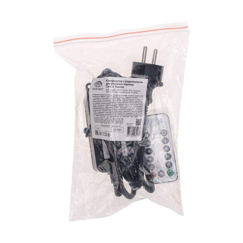 Контроллер предназначен для создания эффекта динамики уличных гирлянд Сеть и Нить (твинкл), изготовленных из ПВХ или каучука. Позволяет добавить в атмосферу ярких красок и создать разнообразные световые эффекты. Устройство имеет радиопульт с 8 режимами работы, что обеспечивает широкий спектр световых настроек для вашей гирлянды. Контроллер обладает эффектом памяти — эта функция позволяет ему запоминать последний выбранный режим работы. Контроллер рассчитан на подключение к нему гирлянд-сетей в количестве до 10 штук (2х1,5 м), до 5 штук (2х3 м) или до 3 штук (2х4 м) и гирлянд нить (твинкл) в количестве до 10 штук по 20 м и до 20 штук по 10 м.