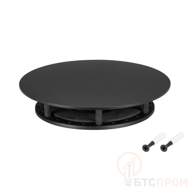 Крепление герметичной ленты MOONLIGHT D25. Материал сталь, цвет чёрный. Размер крышки M (150х150 мм). Подходит для плоских поверхностей. Габариты держателя в сборке 150x150x32.5 мм. Диаметр основания 155 мм. Изделие укомплектовано: основанием (крепится к поверхности), 3 фиксаторами (устанавливаются в любое из отверстий основания) и крышкой (соединяется с основанием).