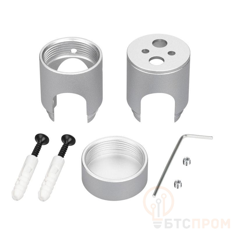 Крепление герметичной ленты MOONLIGHT D18. Материал сталь, цвет серебристый. Габариты держателя в сборке 34x34x76 мм.