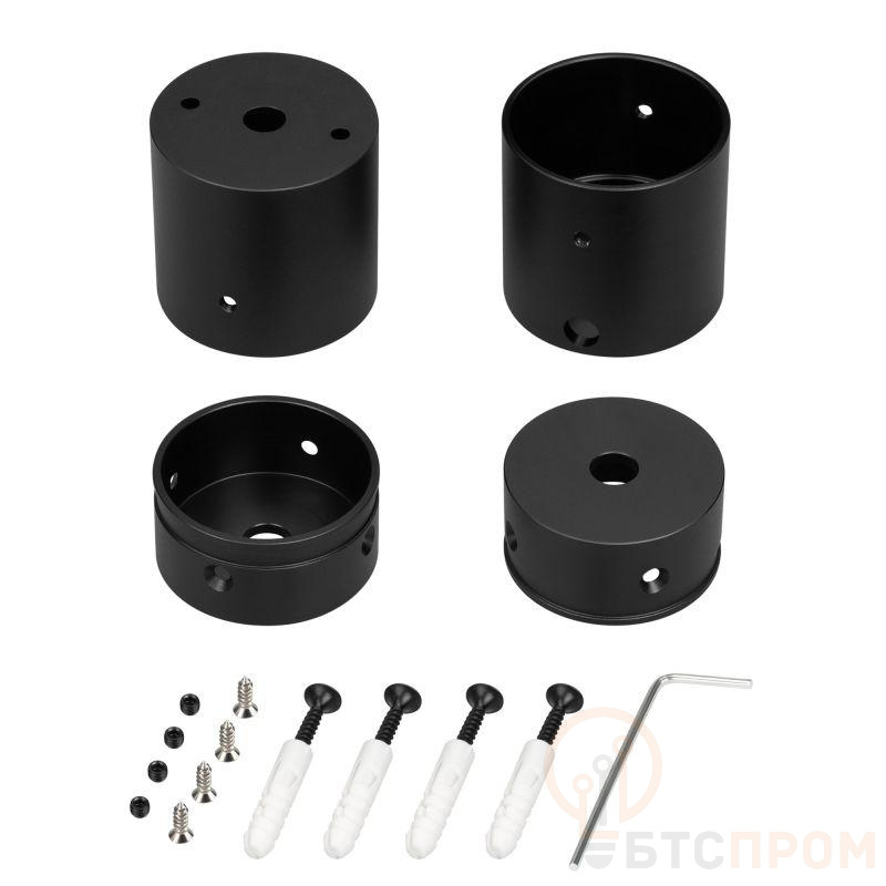 Вертикальное потолочное крепление для герметичной ленты MOONLIGHT-360 диаметром 40 мм, подходит для любых потолочных поверхностей. Цвет чёрный. Габариты крепления внешние 49.5x49.5x47 мм и внутренние 45x45x23 мм. В комплекте 2 крепления.