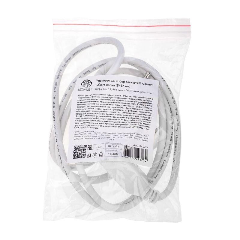 Набор установочный для одностороннего гибкого неона 8х16мм (шнур питания каучук с диодным мостом и вилкой заглушка переходная муфта игла) 1.5м Neon-Night 134-503