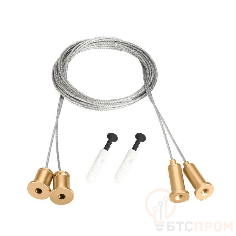 Горизонтальный подвес для герметичной ленты MOONLIGHT-D25. Цвет золотой. Длина тросов 2м, длина горизонтальной трубки - 1м. Подходит для любых потолочных поверхностей. Совместим с прозрачными трубками с боковым выводом кабеля (см.совместимые).