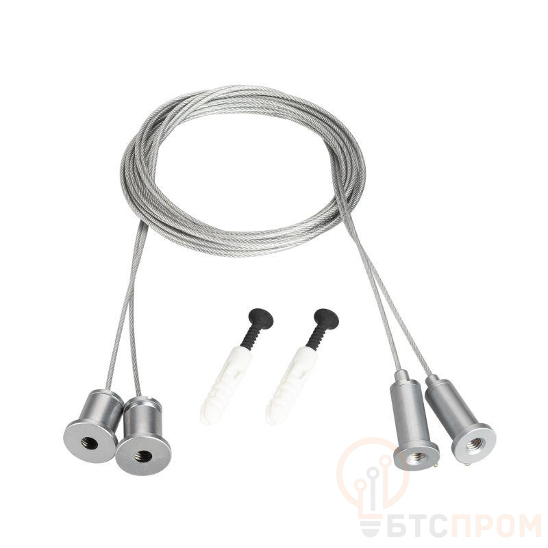 Горизонтальный подвес для герметичной ленты MOONLIGHT-D25. Длина тросов 2м. Подходит для любых потолочных поверхностей. Совместим с прозрачными трубками с боковым выводом кабеля (см.совместимые).