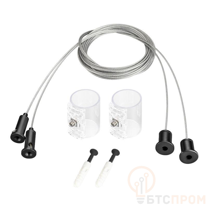 Горизонтальный подвес (в комплекте 2шт.) для герметичной ленты MOONLIGHT-D25. Цвет чёрный. Длина (max - 2м) регулируется, подходит для любых потолочных поверхностей. Совместимо с боковым выводом кабеля (SIDE) ленты. Свободное размещение креплений на ленте.
