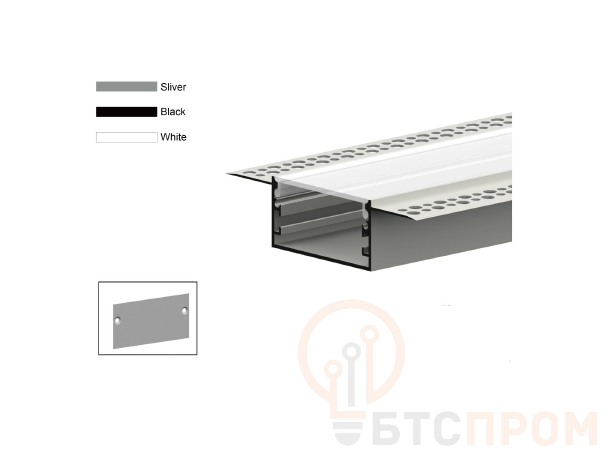 Профиль алюминиевый для встраивания в ГКЛ 2000х88х17 (46.7х17.9 площадка для ленты 37.2мм) (дл.2м) VARTON V4-R0-70.0001.KIT-8817BG