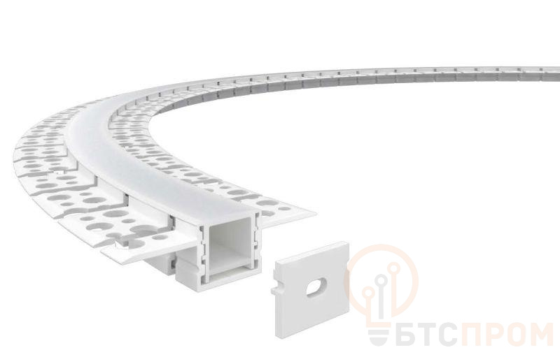 Встраиваемый гибкий алюминиевый профиль для светодиодных лент для встраивания в ГКЛ. Ширина площадки для ленты - 15.4мм. Монтажная ширина 60мм. Ширина вылета 20мм с двух сторон. Глубина встраивания 10мм. Высота 14 мм. Применение: Встраивание в ГКЛ с возможностью формирования изгибов в горизонтальной/вертикальной плоскости. Минимальный диаметр изгиба зависит от применения. В комплект входит профиль, рассеиватель и заглушки ( с отверстием и без).