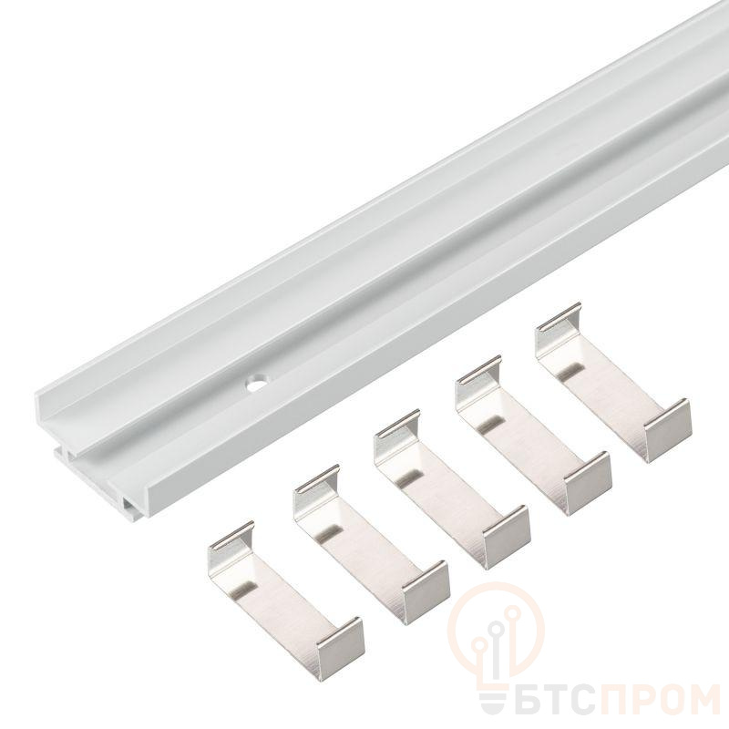 Комплект алюминиевый анодированный профиль (канал) и стальные клипсы для фиксации ленты FLT. Размеры профиля (L?W?H) 990x26.2x11.8 мм. Ширина площадки 23.2 мм. В комплекте поставляются 5 шт стальных клипс для дополнительной фиксации ленты в профиле, размеры клипс (L?W?H) 26x8x7.7мм. Для профиля предусмотрен поворотный держатель, поставляется отдельно. Цена за комплект.