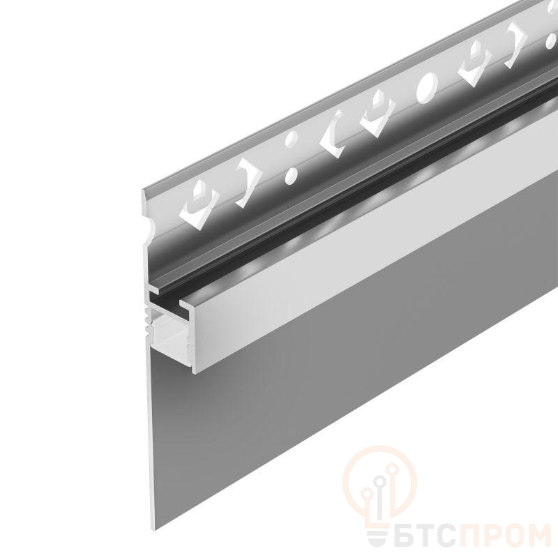 Алюминиевый анодированный профиль-плинтус для светодиодных лент и линеек. Габаритные размеры (L?W?H): 3000x13,2x85 мм. Ширина площадки для ленты 9,2 мм. Аксессуары приобретаются отдельно. Цена за метр.