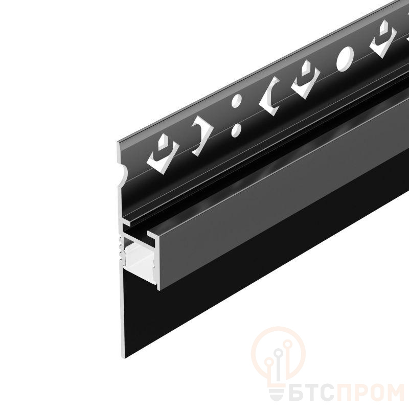 Алюминиевый профиль для светодиодных лент и линеек, для подсветки стен и пола по периметру. Цвет - черный RAL9005 (порошковая окраска). Габаритные размеры (L?W?H): 2000x13,2x60 мм. Ширина площадки для ленты 9,2 мм. Аксессуары приобретаются отдельно. Цена за метр.