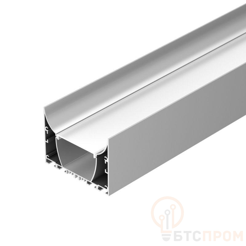 Под заказ от 100 м, сроки и цену уточняйте у менеджера. Алюминиевый анодированный накладной/подвесной профиль для светодиодных лент и линеек. Габаритные размеры (L?W?H): 2000x75x55 мм. Ширина площадки для ленты 32.1 мм. Экраны, заглушки и другие аксессуары приобретаются отдельно. Цена за 1 метр.