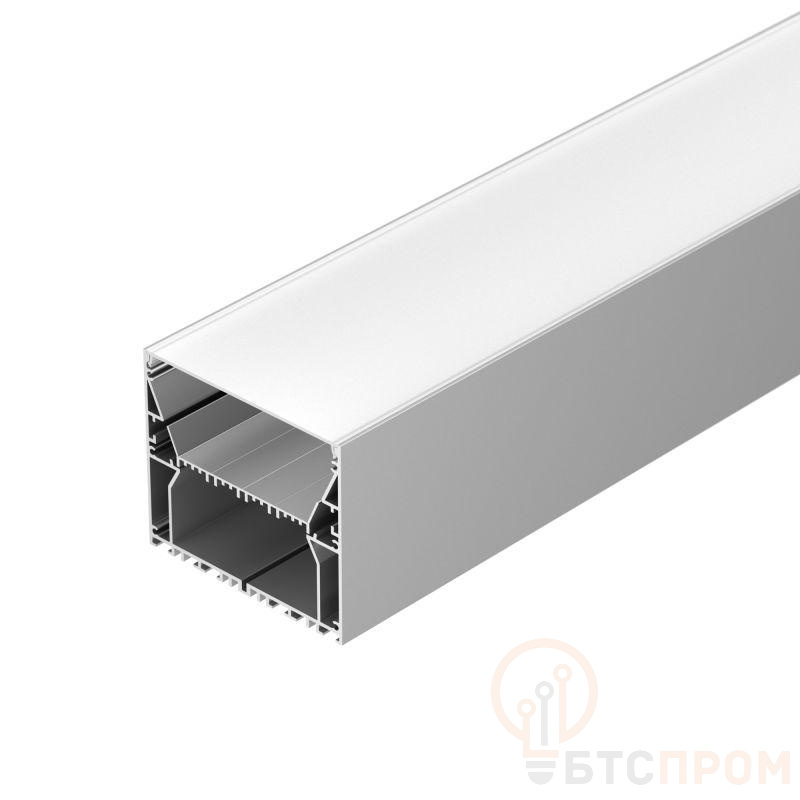 Под заказ от 10 м. Алюминиевый анодированный профиль для светодиодных лент и линеек. Габаритные размеры (L?W?H): 2000x100x85 мм. Ширина площадки для ленты 65,8 мм. Состоит из профиля и основания для ленты. Для их соединения необходим Фиксатор основания арт. 036434 (приобретается отдельно, 4 шт. на 2 м. профиля). Отсек для БП 64х33 мм. Экраны, заглушки и другие аксессуары приобретаются отдельно. Цена за 1 метр.