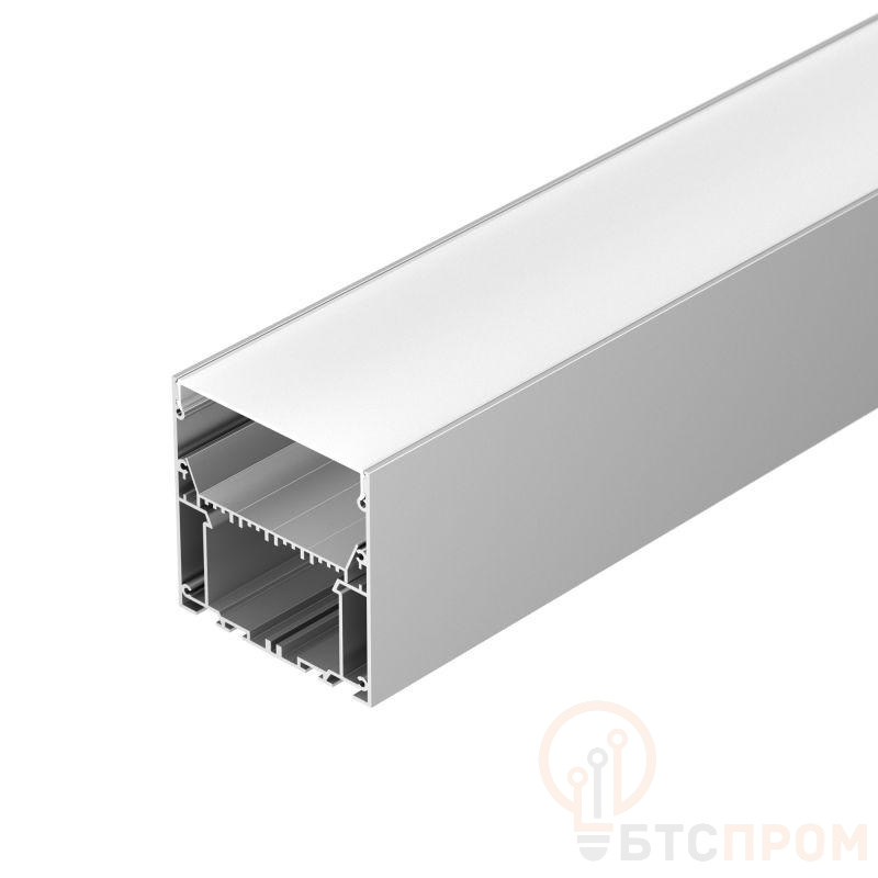 Под заказ от 24 м. Алюминиевый анодированный профиль для светодиодных лент и линеек. Габаритные размеры (L?W?H): 2000x88x88 мм. Ширина площадки для ленты 65,5 мм. Состоит из профиля и основания для ленты. Для их соединения необходим Фиксатор основания арт. 036431 (приобретается отдельно, 4 шт. на 2 м. профиля). Отсек для БП 48х38 мм. Экраны, заглушки и другие аксессуары приобретаются отдельно. Цена за 1 метр.