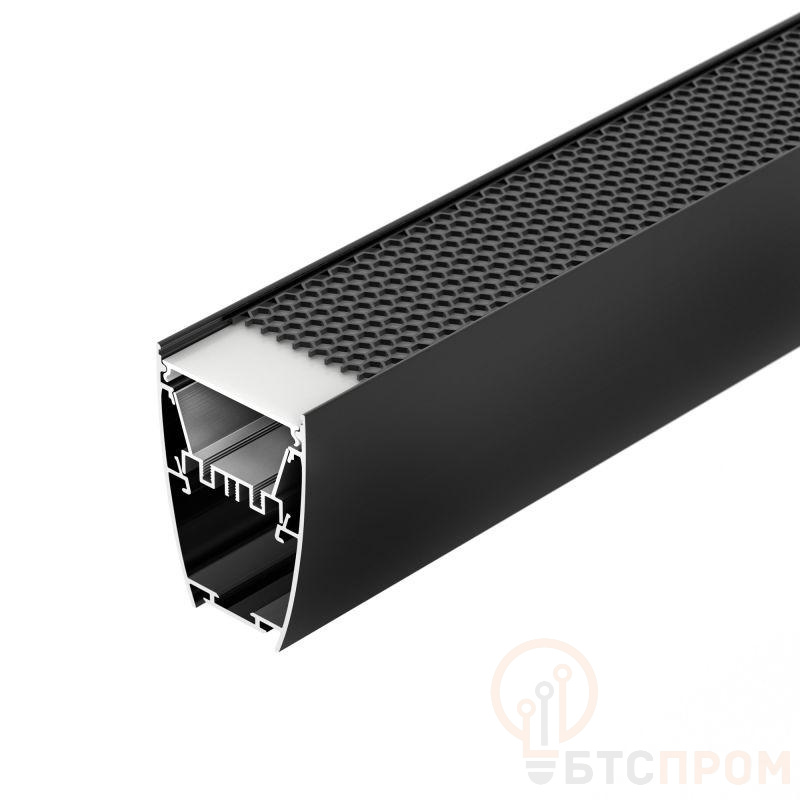 Алюминиевый накладной профиль для светодиодных лент и линеек. Цвет - черный RAL9005 (порошковая окраска). Габаритные размеры (L?W?H): 2000x75,2x52,4 мм. Ширина площадки для ленты 16 мм. Отсек для БП 33,2х25,5м. Экраны, заглушки и другие аксессуары приобретаются отдельно. Цена за 1 метр.