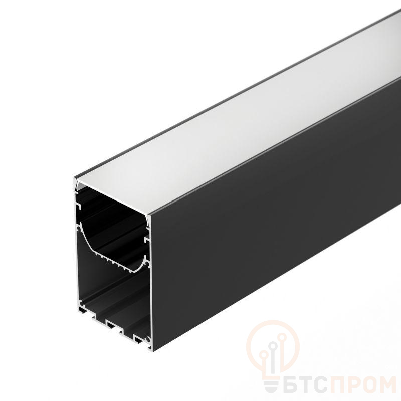 Алюминиевый профиль для светодиодных лент и линеек. Цвет - черный RAL9005 (порошковая окраска). Габаритные размеры (L?W?H): 2500x50,7x75 мм. Ширина площадки для ленты 26 мм. Отсек для БП 48,2х30,2 мм. Экраны, заглушки и другие аксессуары приобретаются отдельно. Цена за 1 метр.