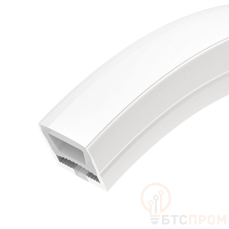 Цельнолитой силиконовый гибкий профиль, белый матовый. Габаритные размеры 5000?14?14 мм. Вертикальный изгиб TOP, минимальный радиус изгиба 60 мм. Для установки во влажных помещениях необходима герметизация при помощи двухкомпонентного эпоксидного герметика. Класс пылевлагозащиты – IP65 (при соблюдении технологии герметизации). Для лент шириной от 10 до11 мм, высотой до 2,5 мм и мощностью до 10 Вт/м. Угол излучения 115°. Поставляется в катушках по 5 м. Цена за 1 м.