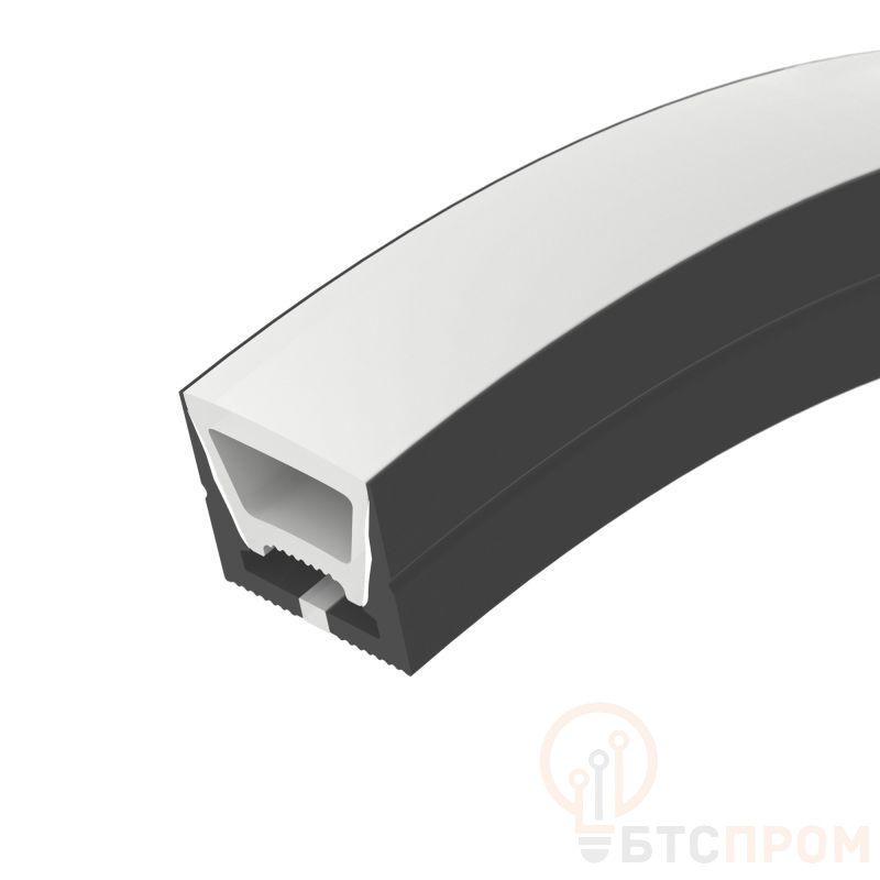 Цельнолитой силиконовый гибкий профиль, верхняя часть - белая матовая, остальные стороны - черные матовые. Габаритные размеры 5000?16?16 мм. Вертикальный изгиб TOP, минимальный радиус изгиба 60 мм. Для установки во влажных помещениях необходима герметизация при помощи двухкомпонентного эпоксидного герметика. Класс пылевлагозащиты – IP65 (при соблюдении технологии герметизации). Для лент шириной 10 мм, высотой до 2,85 мм и мощностью до 10 Вт/м. Угол излучения 110°. Поставляется в катушках по 5 м. Цена за 1 м.