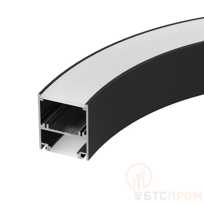 Под заказ от 12 шт. Алюминиевый профиль для составления круга диаметром 1500мм, для радиусной светодиодной линейки, свечение вверх и вниз, длина ? от круга 1500мм. Внутренний диаметр круга 1450мм, внешний диаметр круга 1550мм. Цвет - черный RAL9005 (порошковая окраска). Габаритные размеры (L?W?H): 589,05x50x60 мм. Ширина площадки для ленты - 30 мм. Экраны, заглушки и другие аксессуары приобретаются отдельно. Цена за 1 шт.