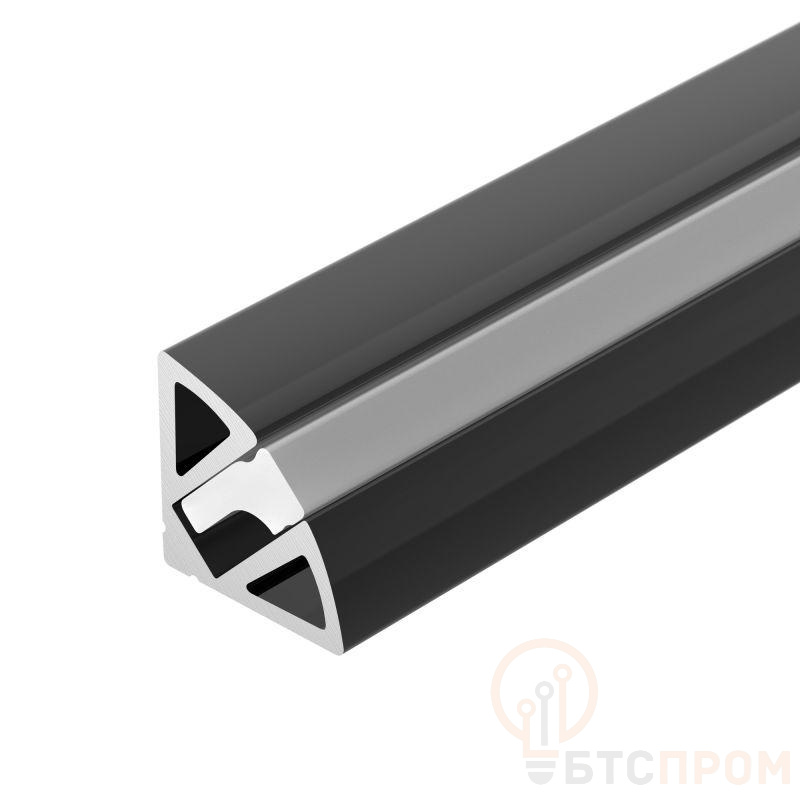 Алюминиевый анодированный угловой профиль для светодиодных лент и линеек. Цвет - черный. Габаритные размеры (L?W?H): 2000x11x11 мм. Ширина площадки для ленты 5,2 мм. Экраны и заглушки приобретаются отдельно. Цена за 1 метр.