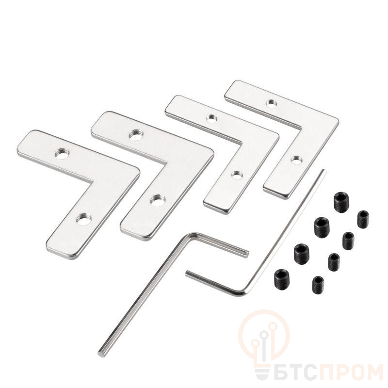 Угловой коннектор для соединения 2-х отрезков профиля LINE-6070. Устанавливается в паз. В комплекте: соединитель внутренний - 2 шт., соединитель внешний - 2 шт., винт - 8 шт., шестигранный ключ - 1 шт. Цена за 1 комплект.