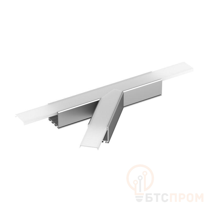Тройник в сборе, для соединения 3-х профилей PLS-LOCK-H25 под углом 135°. Левое ответвление. В комплекте матовый экран (арт.019189), соединители.