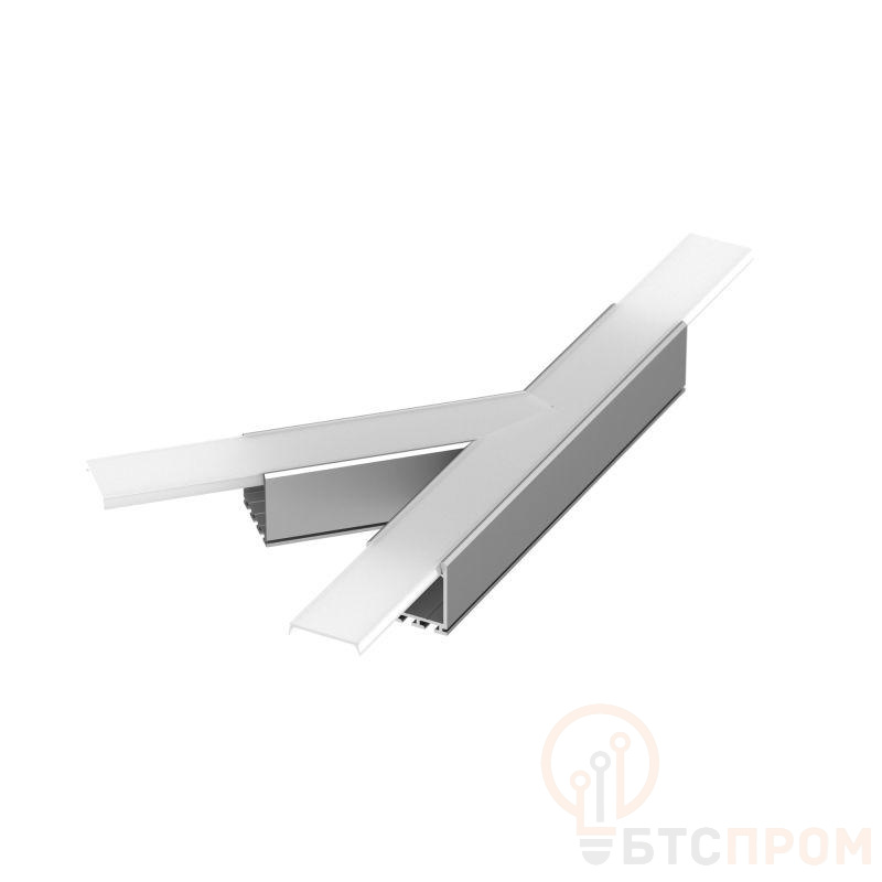 Под заказ от 5 шт. Тройник в сборе, для соединения 3-х профилей PLS-LOCK-H25 под углом 135°. Правое ответвление. В комплекте матовый экран (арт.019189), соединители.