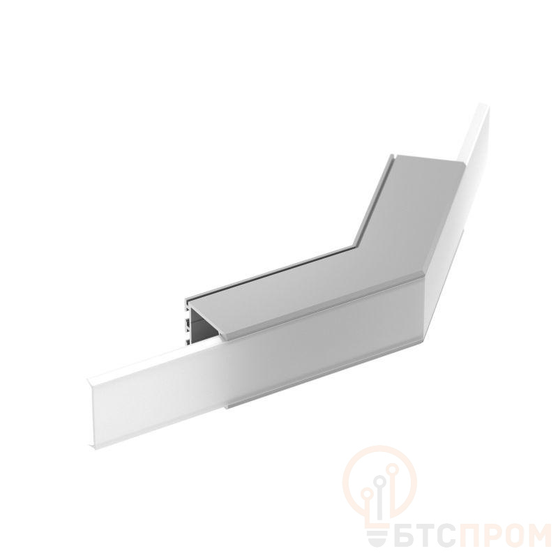 Внешний угол в сборе, для соединения 2-х профилей PLS-LOCK-H25 под углом 135°. Экран образует линию по внешней стороне угла. В комплекте матовый экран (арт.019189), соединители.