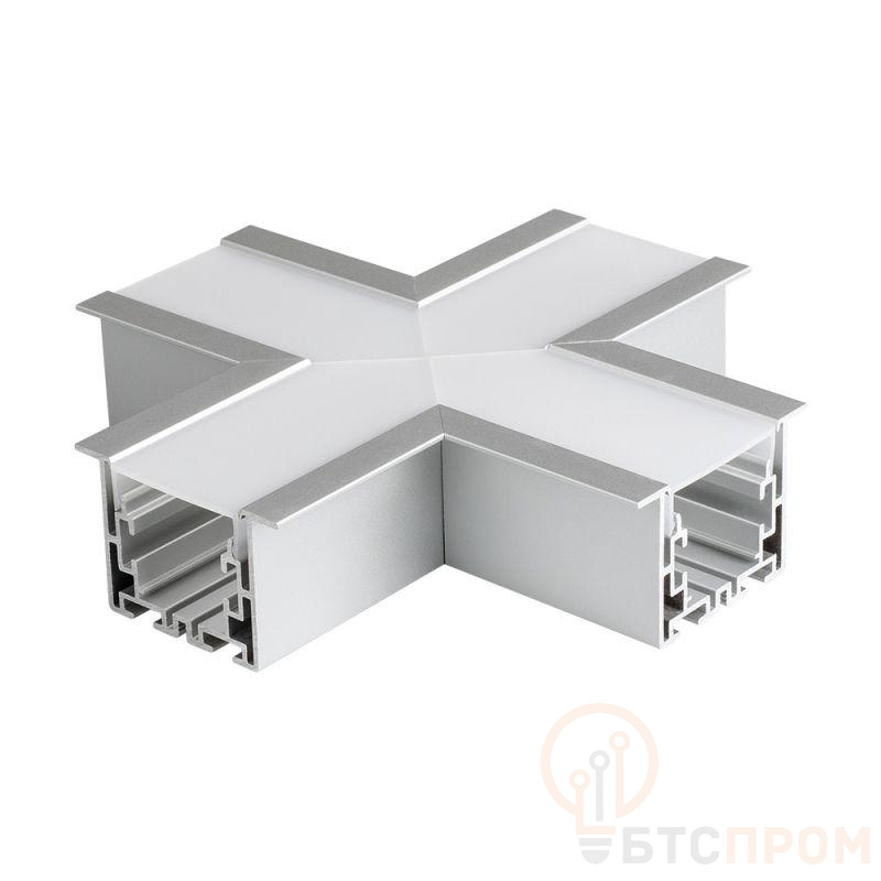 Крестовой угол в сборе, для соединения 4-х профилей S2-LINIA55-F под прямыми углами 90°. Экран образует линию "Х" на плоскости. В комплекте матовый экран, соединители. Размеры 150х150 мм.