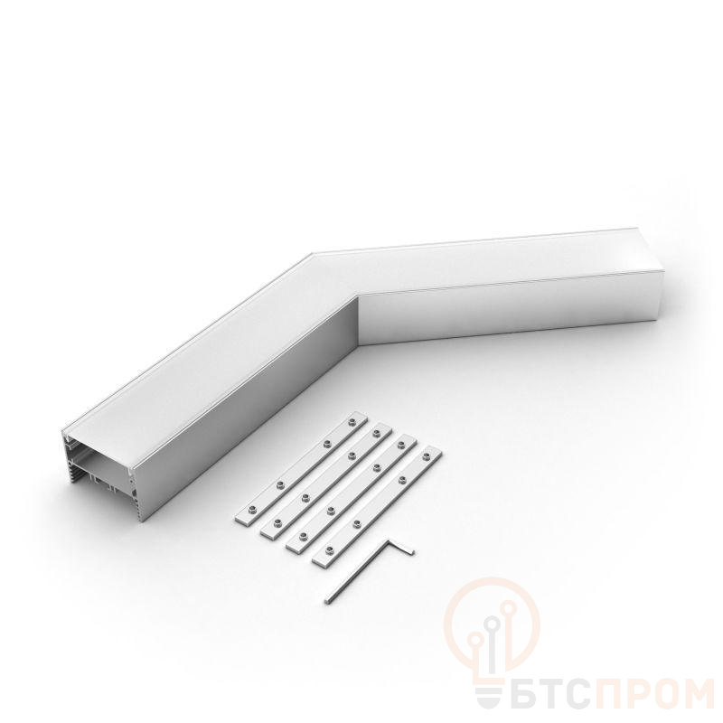 Угол в сборе, для профиля SL-LINE-5035. Угол 135°. В комплекте угол с экраном, соединители, винты, шестигранный ключ.