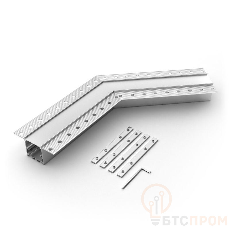 Угловой соединитель в сборе для профиля SL-LINIA32-FANTOM. Угол 135°. В комплекте угол с экраном, соединители, винты, шестигранный ключ.