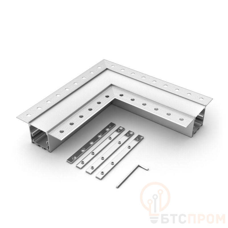 Угловой соединитель в сборе для профиля SL-LINIA32-FANTOM. В комплекте угол с экраном, соединители, винты, шестигранный ключ.