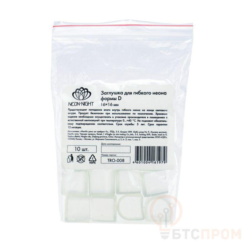 Заглушка предотвращает попадание влаги внутрь гибкого неона на конце светового шнура. Подходит для гибкого неона формы D 16х16 мм. При использовании заглушки необходимо заизолировать свободное воздушное пространство морозостойким силиконовым герметиком, предотвращающим попадание влаги. Сверху данного соединения необходимо использовать термоусаживаемую трубку.