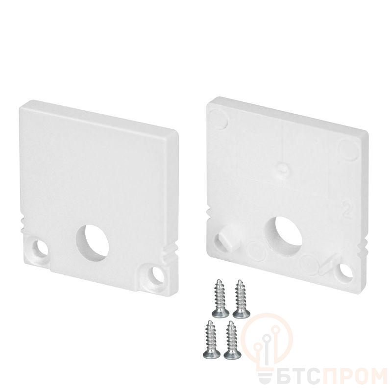Пара заглушек белого цвета с отверстием для профиля SL-SLIM20-H20. В комплекте 2 заглушки, 4 шурупа. Цена за комплект.