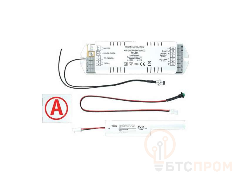 Блоки аварийного питания (БАП) серии CONVERSION KIT POWER LED являются универсальным решением для организации аварийного освещения и подключаются к драйверам светодиодных светильников, работающим от постоянного тока. БАП питают драйвер светильника постоянным током с напряжением 220В. В аварийном режиме светильник выдает до 100% светового потока (зависит от мощности светильника). Материал корпуса выполнен из пластика, не поддерживающего горение и соответствует Федеральному закону Российской Федерации от 22.07.2008 №123-ФЗ (Технический регламент о требованиях пожарной безопасности). БАП располагается рядом со светильником, в запотолочном пространстве, либо в щитке рабочего освещения. БАП может быть установлен в бокс IP65 (поставляется отдельно). Некоторые модификации БАП CONVERSION KIT POWER LED поставляются установленными в бокс IP65 (поставляются вместе с боксом) и устанавливаются на опорную поверхность. БАП состоит из самого блока аварийного питания, аккумулятора, кнопки индивидуального теста, индикатора работоспособности. В аварийной ситуации (отключение питающего напряжения в сети или падение ниже 160В) БАП переключает питание на аккумулятор. БАП оснащен переключающим реле, которое позволяет коммутировать светильник через настенный выключатель. Управление светильником через выключатель не влияет на работу БАП. Тестирование работоспособности проводится с помощью индивидуальной кнопки тестирования. Данные БАП не совместимы с устройством группового тестирования TELEMANDO.