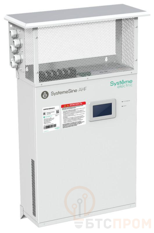 Активный фильтр гармоник торговой марки Systeme Electric серии SystemeSine типа AHF, номинальный ток 100А, номинальное напряжение 400В, степень защиты IP31, навесной модуль с встроенным 4,3 дюймовым ЖК дисплеем, ЭМС фильтром и портом RS-422