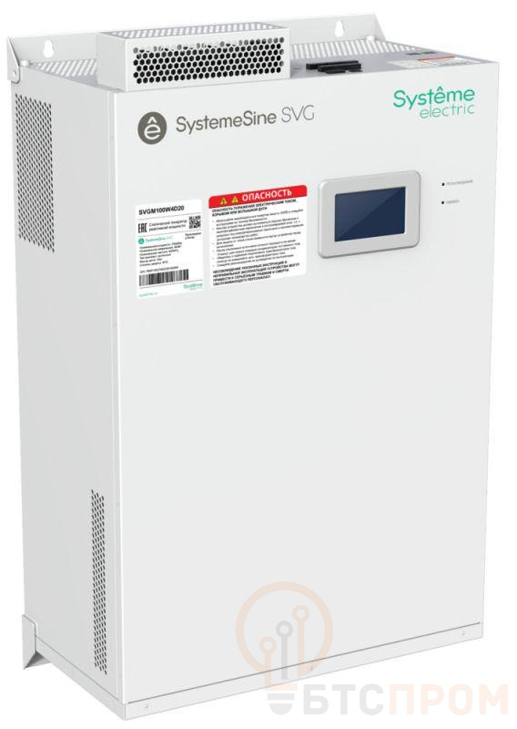 Статический генератор реактивной мощности торговой марки Systeme Electric серии SystemeSine типа SVG, номинальная мощность 100кВАр, номинальное напряжение 400В, степень защиты IP20, навесной модуль с встроенным 4,3 дюймовым ЖК дисплеем, ЭМС фильтром и портом RS-422
