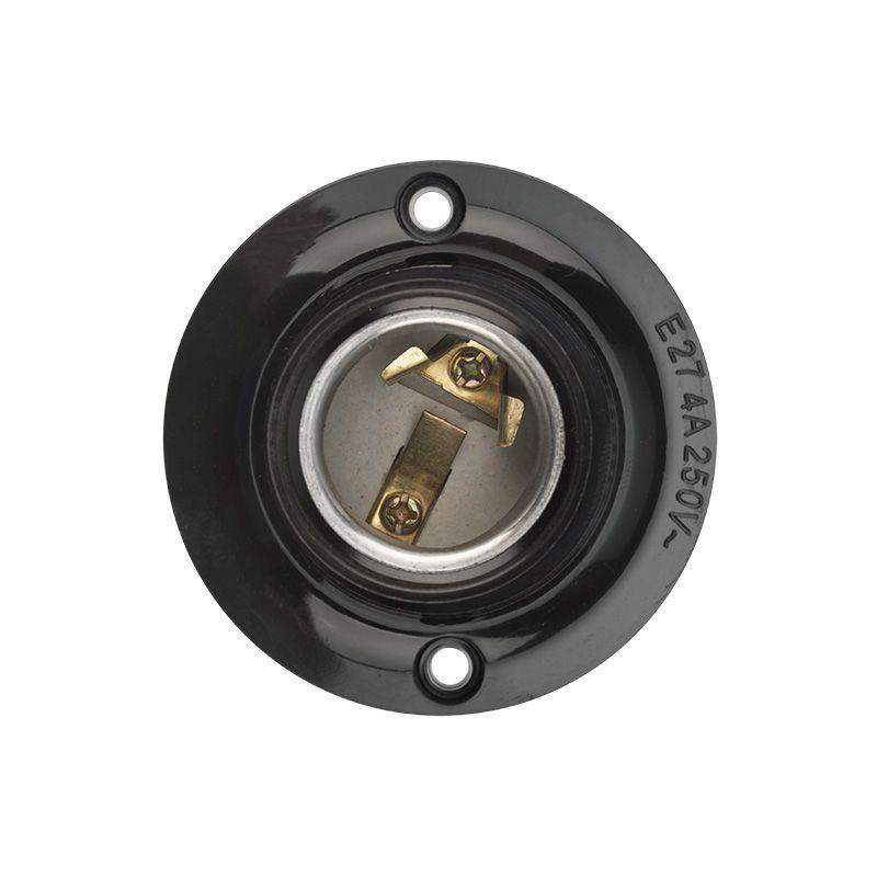 Подвесной карболитовый патрон Е27 предназначен для фиксации ламп и подведения их к электрической сети при подключении бытовых или промышленных источников освещения. Монтируется к потолку с помощью отверстий в корпусе. Корпус патрона выполнен из карболита, который обладает устойчивостью к возгоранию, не подвержен коррозии и не разрушается под действием агрессивных сред. Частота тока: 50/60 Гц.