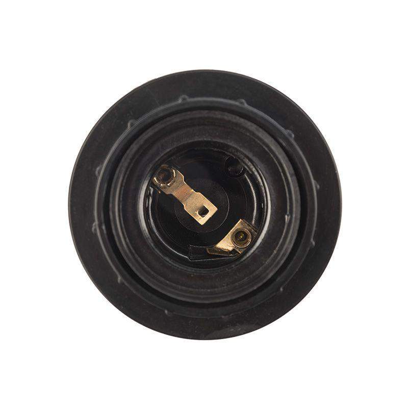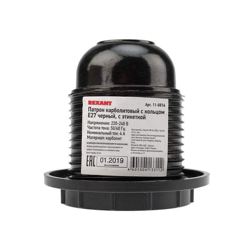 Подвесной карболитовый патрон Е27 предназначен для фиксации ламп и подведения их к электрической сети при подключении бытовых или промышленных источников освещения. Служит в качестве комплектующей детали к осветительному прибору. Корпус патрона выполнен из карболита, который обладает устойчивостью к возгоранию, не подвержен коррозии и не разрушается под действием агрессивных сред. Патрон также оснащен кольцом, предназначенным для крепления торшера или плафона, что делает его удобным для использования в различных светильниках. Частота тока: 50/60 Гц.