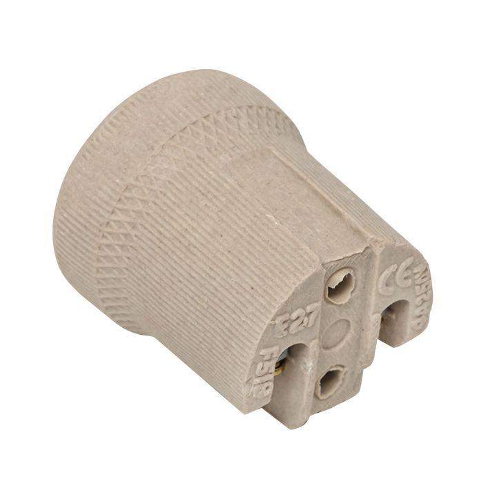 Керамические патроны применяются для установки ламп с цоколем Е27. Патроны выполнены из керамики с использованием железа, что предусматривает высокую надежность и антикоррозийную защиту. Керамический патрон с резьбовым цоколем Е27 широко используется для комплектования светильников как бытового, так и промышленного исполнения. На сегодняшний день патроны Е27 являются наиболее распространенным типом патронов для крепления ламп накаливания. Именно цоколем Е27 оснащается сегодня большая часть выпускаемых промышленностью лам накаливания различной мощности для домашнего и уличного применения.