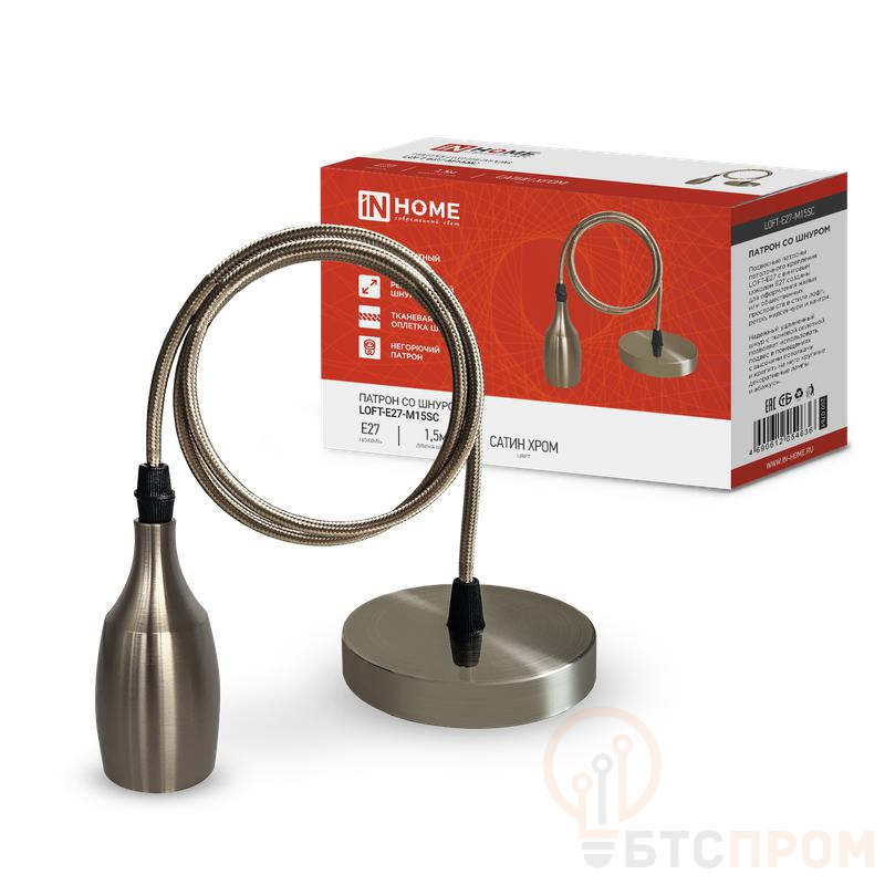 Патрон LOFT-Е27-M15SC со шнуром 1.5м сатин хром IN HOME 4690612054636 фото в каталоге от BTSprom.by