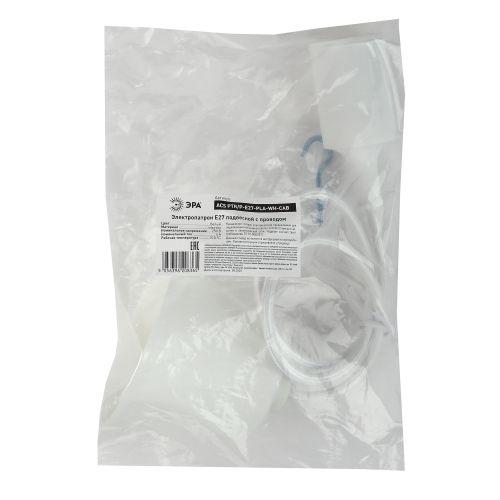 патрон с подвесом, длина провода 80 см, изготавливается из термостойкого пластика, материал химически устойчивый к агрессивным средам, обладает высокой прочностью и теплостойкостью; не обладает способностью выдерживать высокие температуры нагрева, поэтому его чаще всего используют для ламп накаливания мощностью не более 60 Вт. Есть регулировка длины шнура.