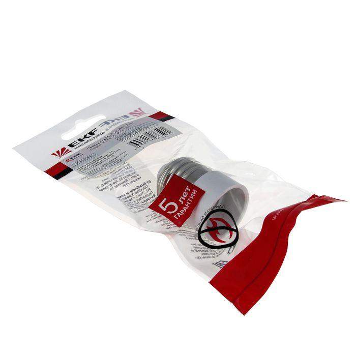 Переходник EKF серии PROxima позволит подключить лампу большего или меньшего цокола в светильник, настольную лампу или люстру. Это изделие позволит избежать дорогостоящих замен светильников, неизбежных затрат на оплату услуг монтажников и сэкономят много времени.