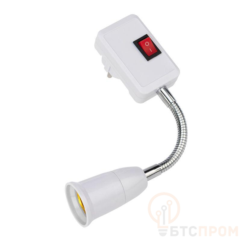 Гибкий цокольный переходник 220 В – E27 предназначен для подключения лампочки с цоколем E27 к сети переменного тока 220 В. Используется для направленного освещения рабочей зоны в местах, где есть розетка. Корпус переходника изготовлен из термостойкого пластика PBT, который выдерживает высокие температуры отличается хорошими изоляционными свойствами, ударопрочностью и химической стойкостью, что делает использование патрона безопасным и надежным. В корпус встроен выключатель, который позволяет погасить свет не извлекая устройство из розетки. Поворотный цоколь позволяет направлять поток света в нужную сторону, что особенно полезно, когда нужно осветить определенную зону или объект. Частота питания: 50/60 Гц.