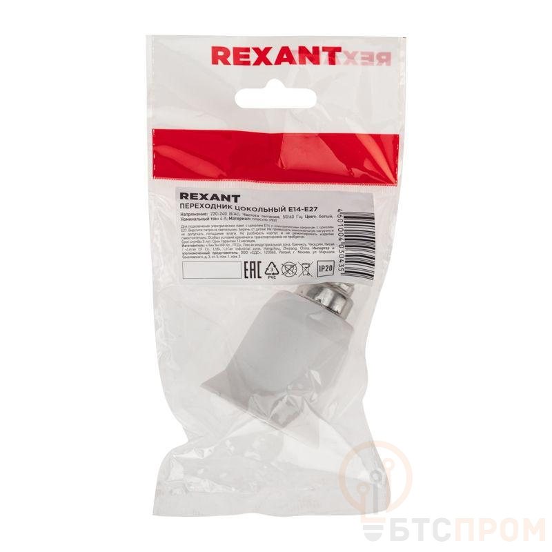 Цокольный переходник Е14 – E27 предназначен для подключения ламп с цоколем E27 к патронам Е14. Распространен в быту и строительстве, когда нужно заменить один тип цоколя лампы на другой. Корпус переходника изготовлен из термостойкого пластика PBT, который выдерживает высокие температуры отличается хорошими изоляционными свойствами, ударопрочностью и химической стойкостью, что делает использование патрона безопасным и надежным. Токоведущие части переходника изготовлены из латуни и обладают высокой электропроводностью и коррозионной стойкостью.