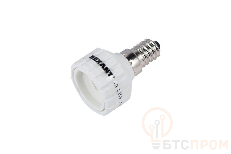 Переходник цокольный Е-14 на GU-10 REхANT применяется при переходе от электрических ламп с цоколем Е14, к электрическим лампам с цоколем GU10. Товар распространен в сфере строительства, при монтажных работах и в быту, когда нужно заменить один тип цоколя лампы на другой. Резьбовая система быстрого соединения электрических ламп обеспечивает надежный контакт.